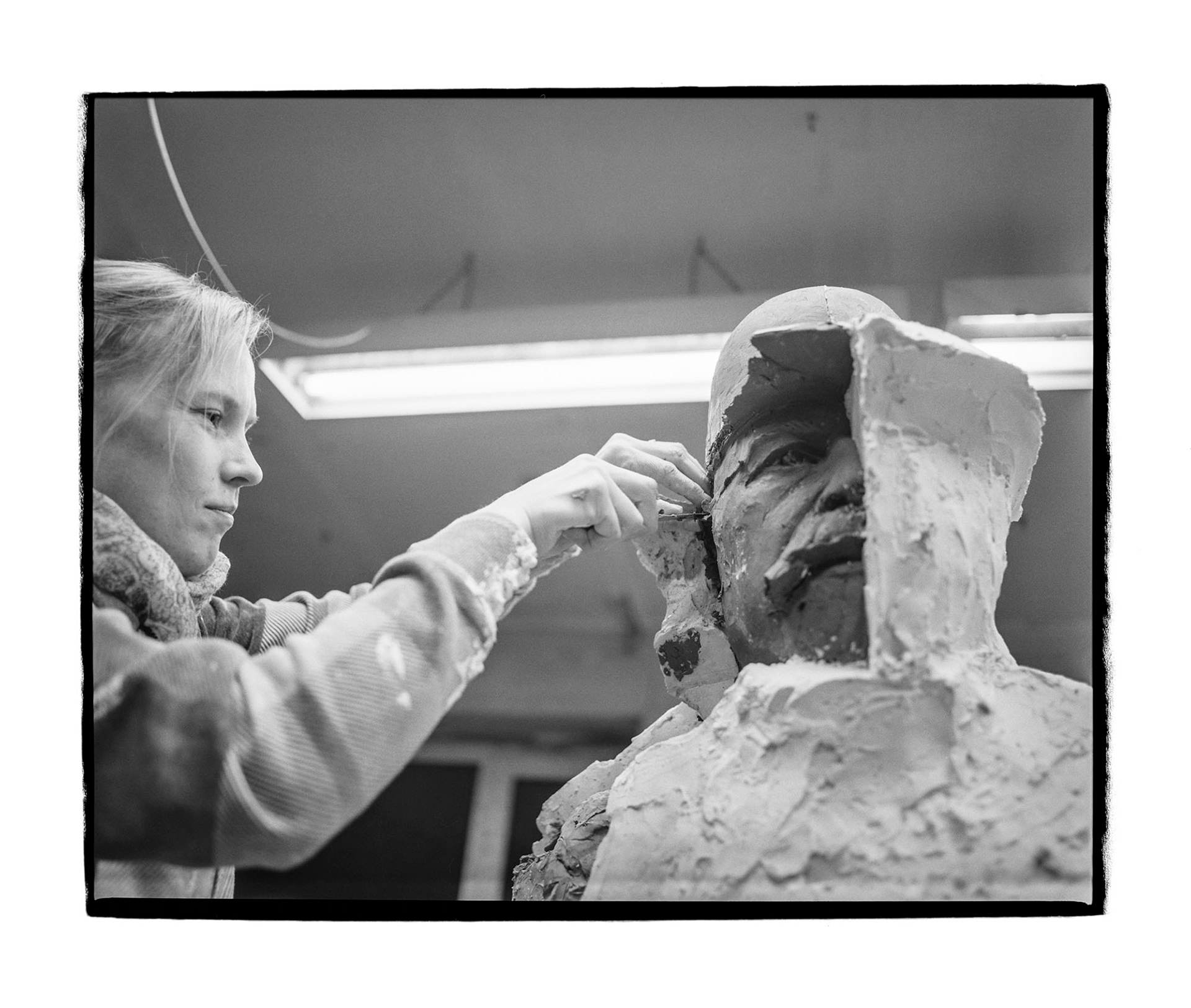 The time-frame between inital concept and finished statue took slightly more than a year. Large portion of the time involved designing a 1:1 size model out of clay that was positioned around a light steel carcass and polystyrene foam.